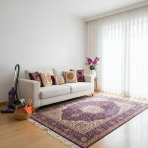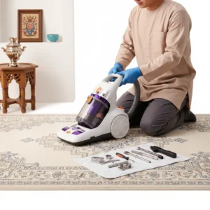 راهنمای جامع شستشوی قالیچه و موکت در خانه آموزش اصول لکه بری و خشک کردن